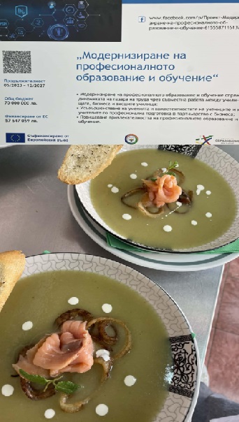 На учениците от XI клас бяха проведени мотивационни обучения от г-жа Живка Вълканова, старши учител практическо обучение. В рамките на обученията те се запознаха с основни кулинарни техники и хигиена, подбор на продукти и технология на пасирани супи, както и приготвяне на традиционни коледни рецепти. Чрез практическа работа те развиха умения за работа в екип, кулинарна креативност и интерес към професионалната си подготовка.